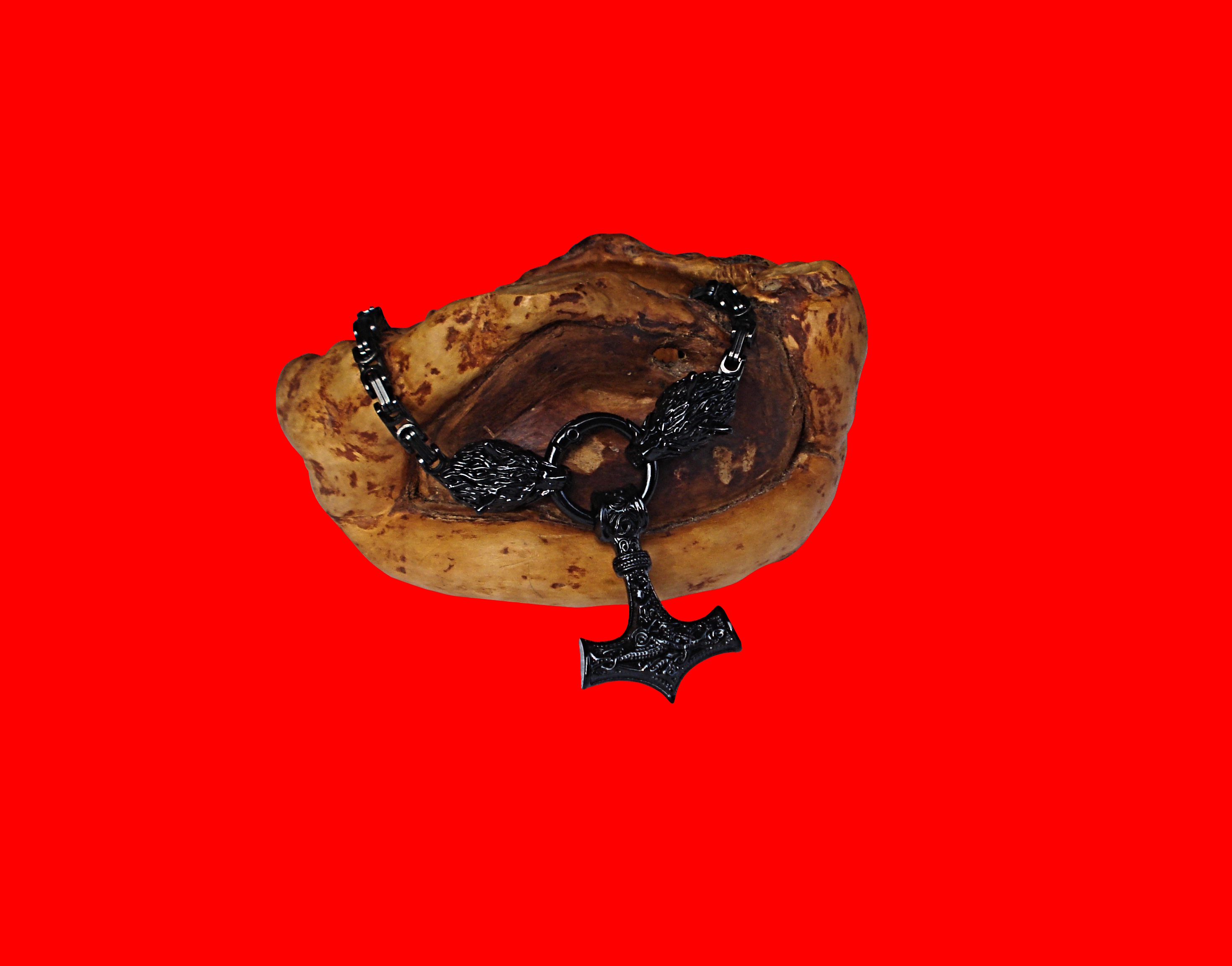 Kette Mit Anhänger "Wölfe & Thorhammer" Schwarz
